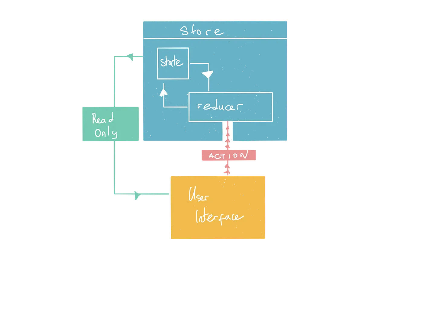 - The user interface/view component can read the state directly from the store. Every component has access to the store.