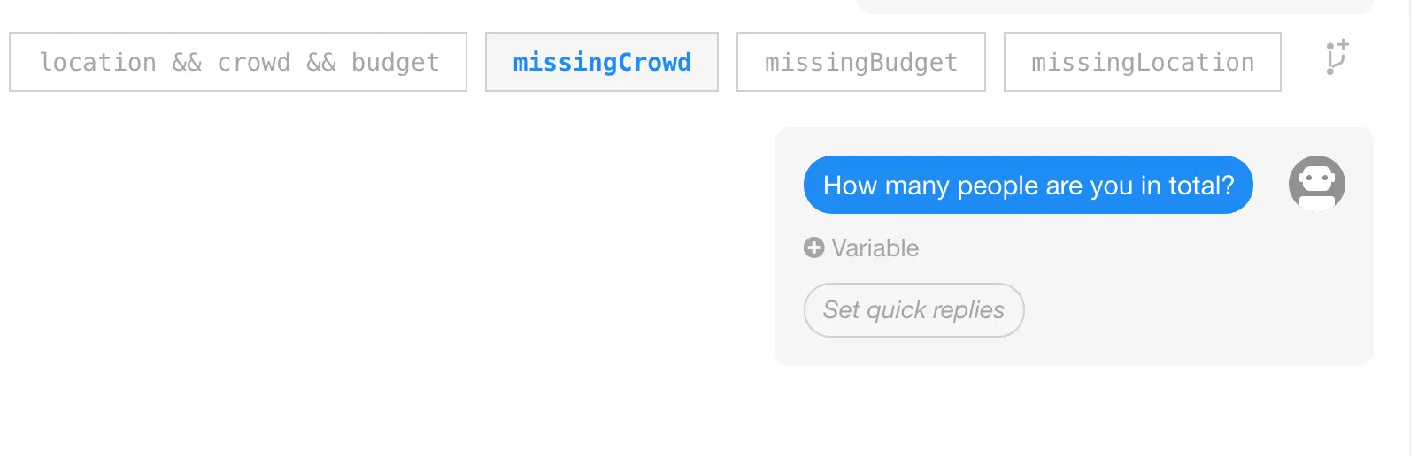 You can tell Wit what to do when your action function adds the location, crowd and budget keys to context object.